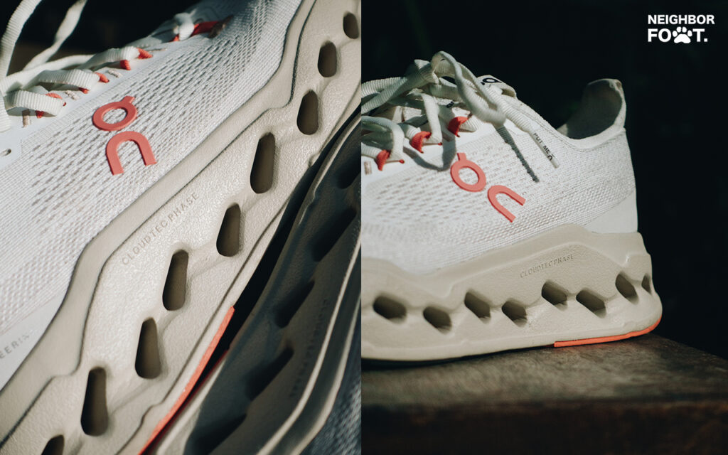 On Cloudsurfer Max เป็นรองเท้า daily trainer ใช้งานทั่วไป ที่รองรับแรกกระแทกได้ดีด้วยเทคโนโลยี CloudTec Phase 2 ชั้น จึงสามารถใส่วิ่งได้หลายประเภท โดยต่อยอดมาจากรุ่น Cloudeclipse และ Cloudsurfer Next ที่มีการเสริม CloudTec Phase 2 ชั้น เพื่อเพิ่มความมั่นคงในการลงน้ำหนัก นอกจากนี้ยังมีการปรับเปลี่ยนร่องใต้เท้า ให้มีองศาในการรับแรงกระแทกได้ดีขึ้น และยังช่วยส่งแรงให้นักวิ่งในการไหลไปข้างหน้าได้ดีขึ้นด้วย