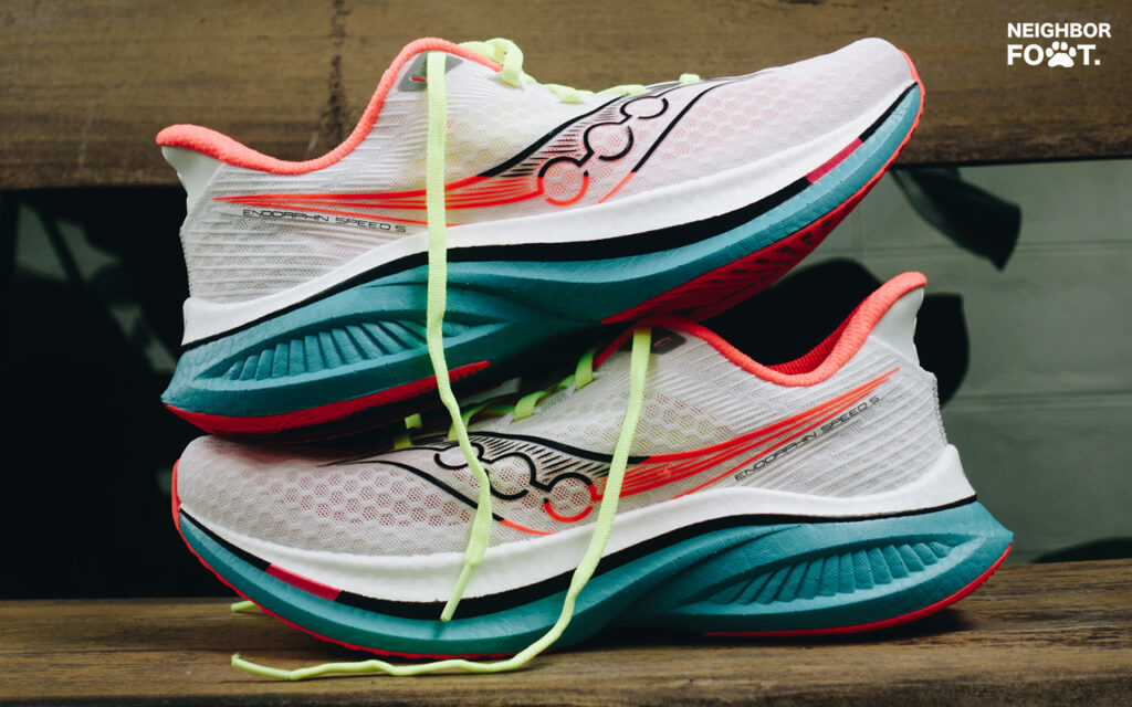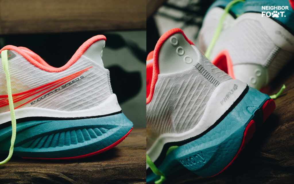 Saucony Endorphin Speed 5 มีการปรับเปลี่ยนรูปลักษณ์หน้าตา ไปจนถึงรายละเอียดต่างๆ จนทำให้ฟิลลิ่งต่างไปจาก Endorphin Speed 4 ค่อนข้างชัด ถึงแม้ยังคงใช้โฟม PWRRUN PB ที่เคยเป็นอดีตโฟมตัวท็อปอยู่ คั่นด้วยแผ่นไนลอนแต่มีการปรับเปลี่ยนเทคโนโลยี Speedroll ที่เป็นทรงโค้งของตัวรองเท้าให้มีความเชิ่ดมากขึ้น ปลายเท้าสูงขึ้น และส่งผลให้การวิ่งมีความกลิ้งมากขึ้นตามไปด้วย