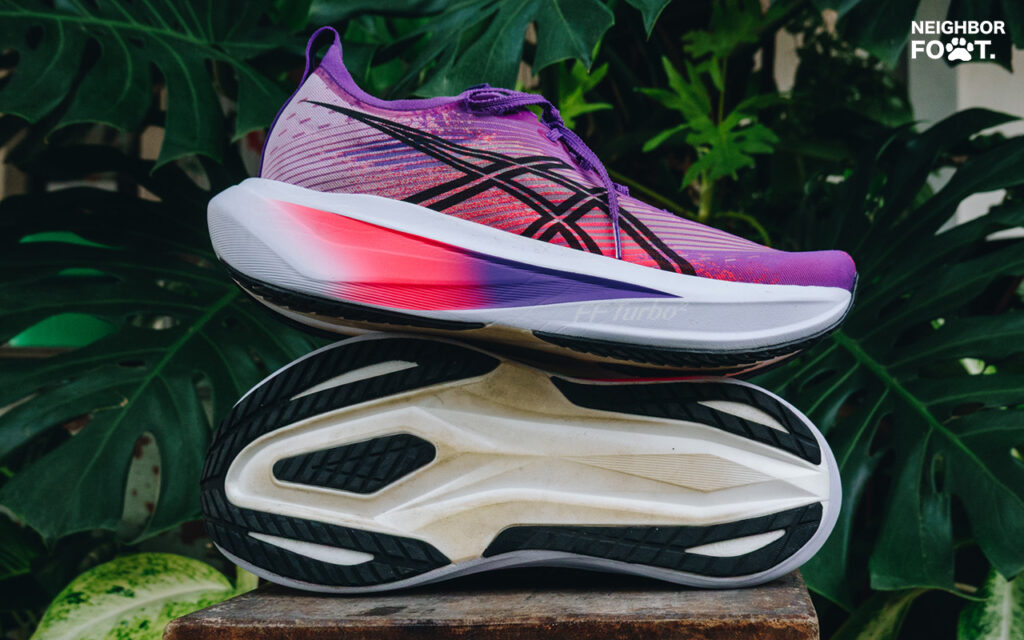 Asics Megablast ออกแบบมาเป็นรองเท้าซ้อม ที่มาพร้อมการซัพพอร์ต แต่ยังคงประสิทธิภาพให้ใส่วิ่งทำความเร็วได้ รองรับแรกกระแทกได้ด้วย มาพร้อมโฟมใหม่ FF Turbo2 (ยกกำลังสอง) ที่ประสิทธิภาพสูงขึ้น แต่ออกแบบมาให้ใช้เพื่อการซ้อมไกลๆ ยาวๆ ได้ดีขึ้นด้วย เพราะรับแรงกระแทกได้แบบไม่เด้งจนเกินไป แถมพื้นค่อนข้างกว้าง ลงน้ำหนักได้มั่นใจ ไม่ต้องกังวลว่าโฟมจะยุบไปทิศทางใดทิศทางหนึ่ง