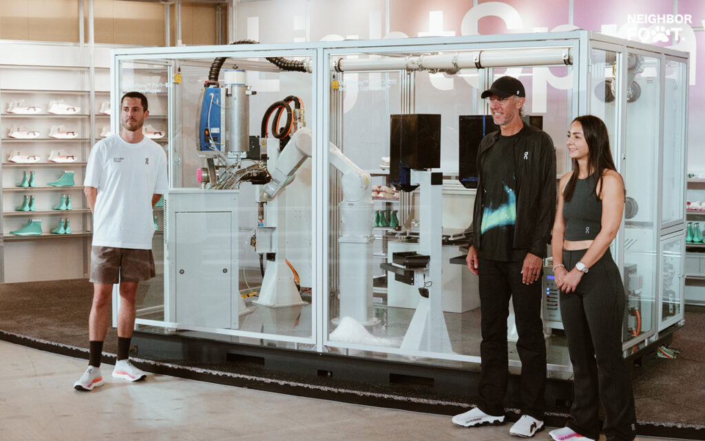 นอกจากนี้เรายังได้เจอกับคุณ Olivier Co-Founder ของแบรนด์ On เล่าว่ากระบวนการนี้จะช่วยเปลี่ยนภาพลักษณ์อุตสาหกรรมการผลิตรองเท้าวิ่งได้เลย โดยอาศัยเพียงเส้นใยเส้นเดียวที่ยาวกว่า 1.5 กิโลเมตร ทอขึ้นเป็นหน้าผ้ารองเท้า การบวนการทอนี้ช่วยลดชิ้นส่วนของรองเท้าวิ่งทั่วไปที่เขาว่ามีประมาณ 34 ชิ้น ให้เหลือเพียง 7 ชิ้น ปริมาณเส้นใยเหลือทิ้งยังสามารถนำไปรีไซเคิลได้อีก แถมยังลดปริมาณคาร์บอนที่เกิดจากการผลิตลงได้อีก ก๊าซที่เกิดขึ้นจะถูกควบคุมในห้องกระจกและกำจัดในรูปแบบต่างๆ เพื่อลดการส่งออกคาร์บอนสู่ชั้นบรรยากาศให้ได้มากที่สุด